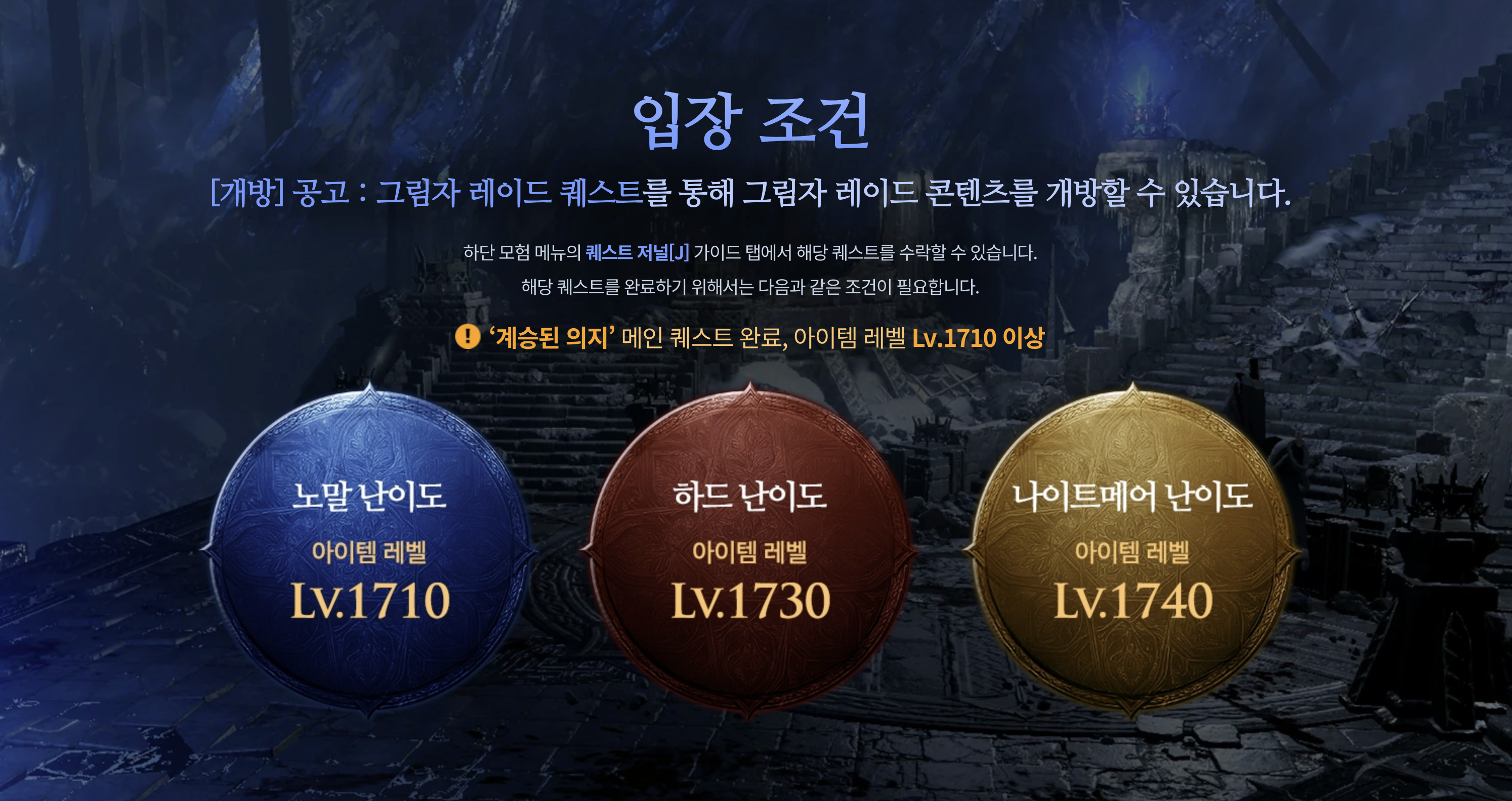 ‘계승된 의지’ 메인 퀘스트 완료, 아이템 레벨 Lv.1710 이상