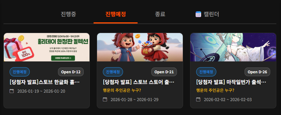 그래서 오늘은 진행 중이거나 예정인 이벤트 정보만 간략히 다룰까 합니다.