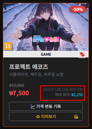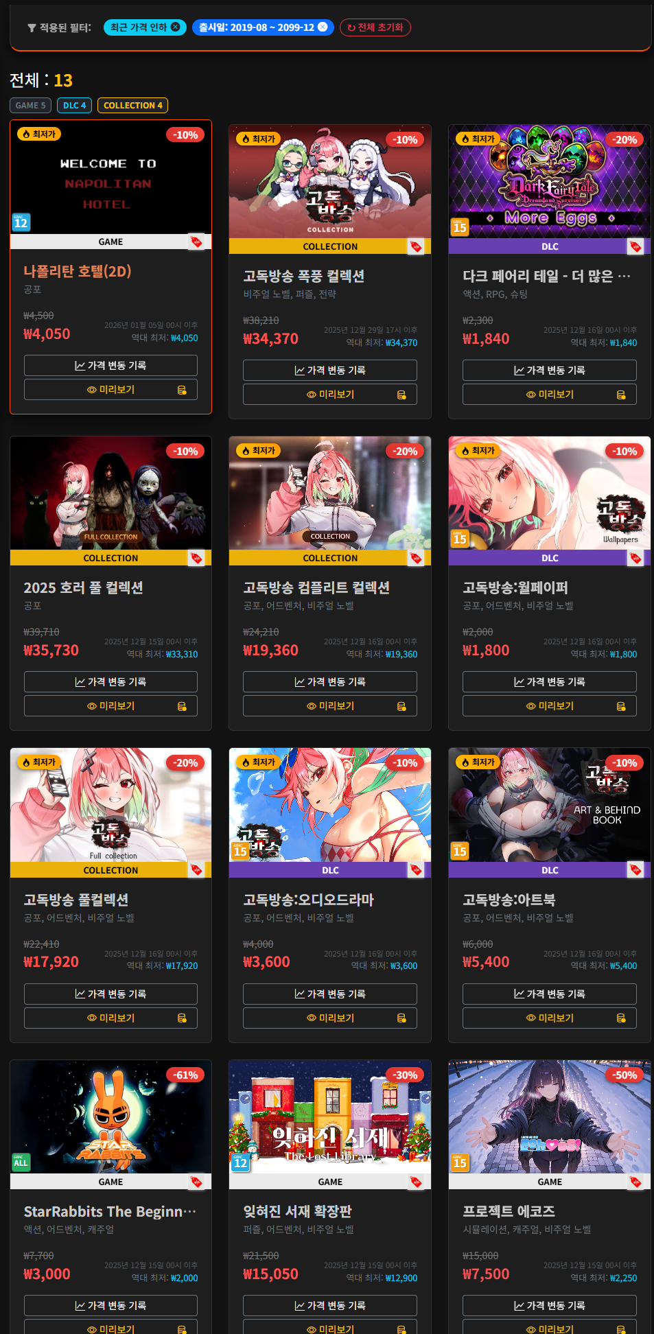 제일 아래 게임의 가격 그래프 변동폭이 대단하네요.