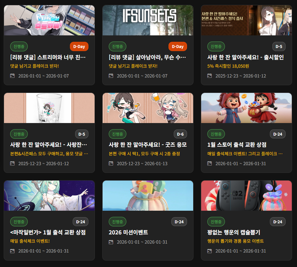캡쳐 된 이벤트 소식은 위 링크에서 확인 가능합니다.