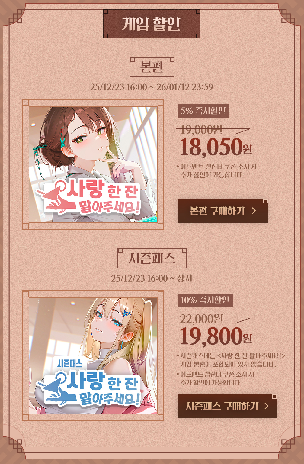 - 사랑 한잔 말아주세요! 출시 할인 이벤트는 5일 남았습니다.