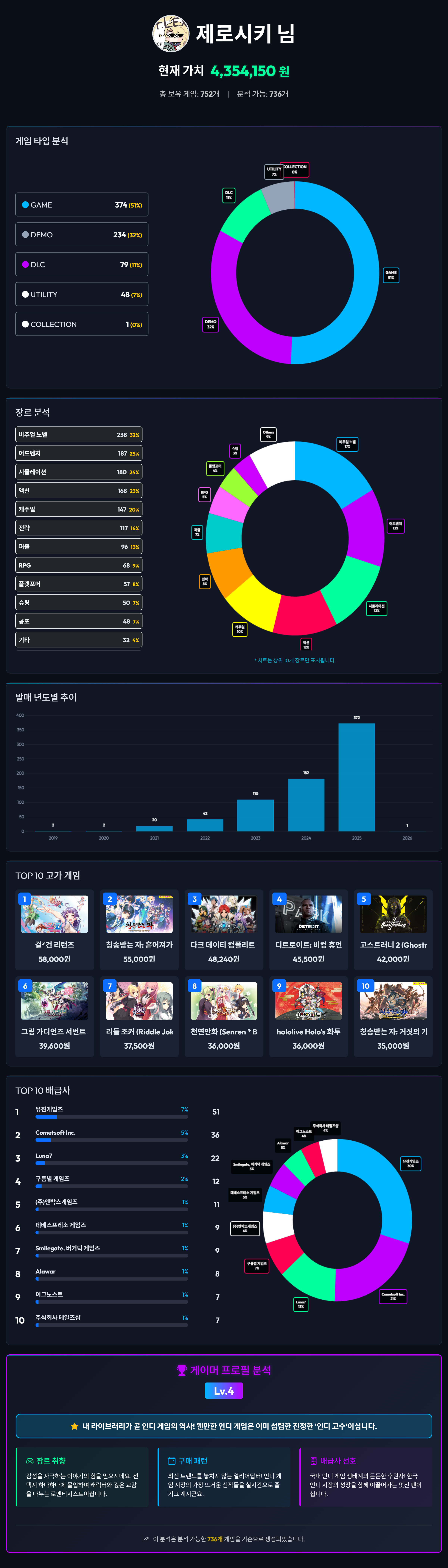 역시 비주얼 노벨류 게임 비중이 제일 높군요. 그런데 유진게임즈 게임은 왜저리 카운트가 높은거지..?