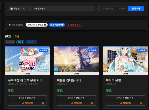 저도 44개라서 검색해봤더니. 미연시 워크샵에서 만든 게임 무료 게임이 많더군요.