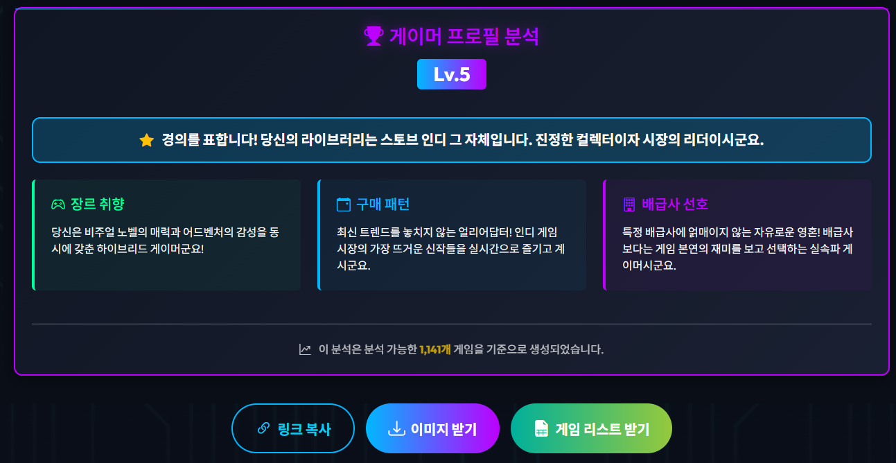 게임 리스트를 통해 AI가 상상한 나의 모습 궁금하지 않으신가요?