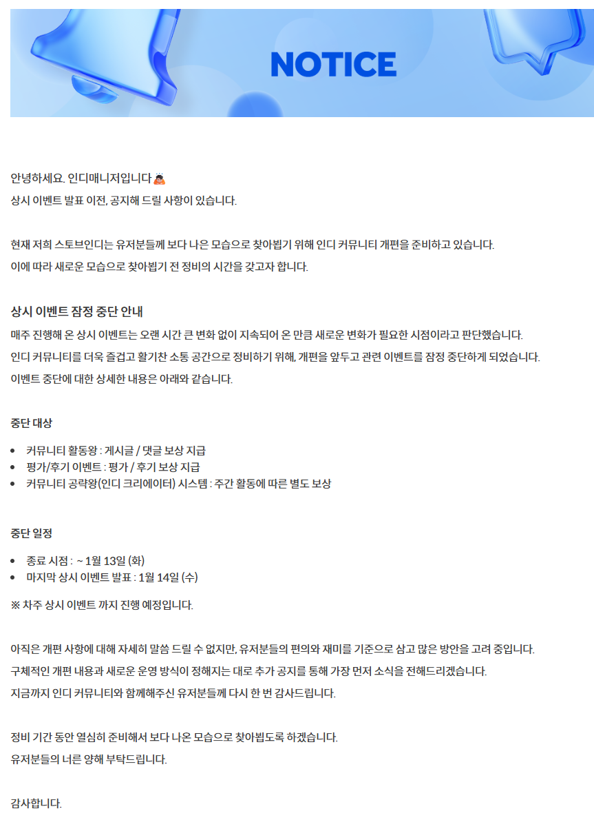 @ 상시 이벤트 잠정 중단 공지