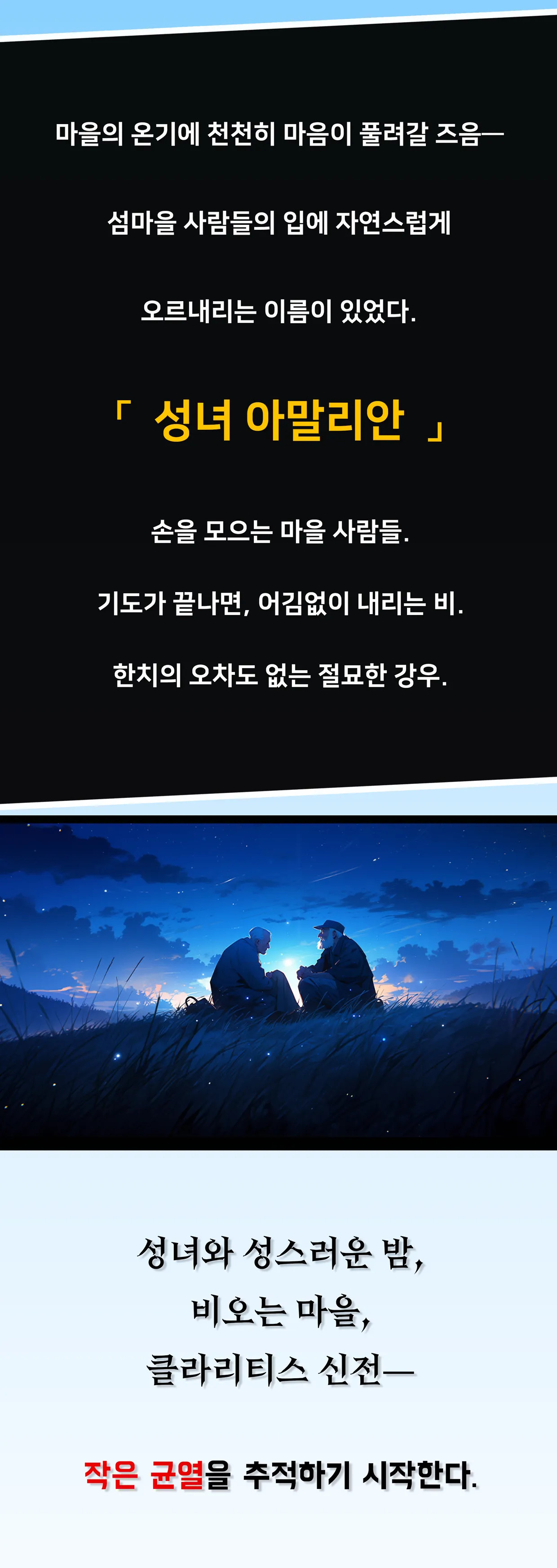 평온한 섬에 스며든 기도와 숭배, 그 비밀과 균열을 추적하는 2D 미스터리 비주얼 노벨.