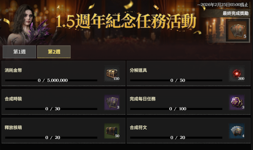 - 活動期間內若完成所有交付的任務,即可獲得最終完成獎勵。