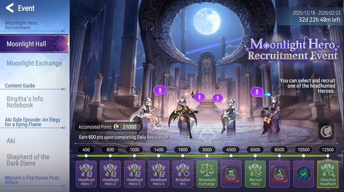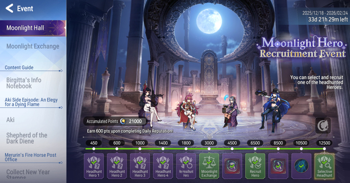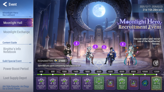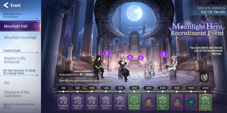 Share a screenshot of your “Moonlight Hall” screen showing your current recruitment progress in the comment section. Everyone who leaves a comment will receive a reward!