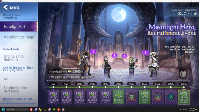 Go to Lobby > Event > Moonlight Hero Recruitment Event, and take a screenshot of your “Moonlight Hall” screen. Then leave a comment with your screenshot in the comment section, following the format below!