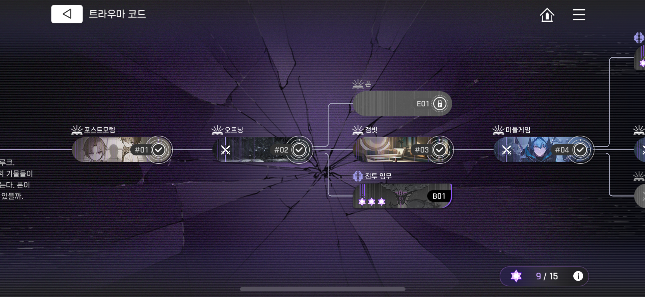 분기 전 스토리로 다시보기 눌러서 원래 골랐던 분기말고 다른거 선택하셔야 열려요
