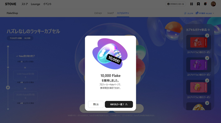 I always gacha with 100 Flake, so I only get about 3,000 or 5,000 Flake, but I got 10,000 Flake for once!! Lucky