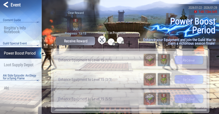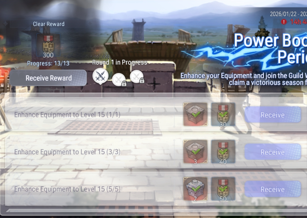 All Heirs who complete a Guild-related mission from the “Power Up Period” event and share a screenshot will receive a participation reward. Additionally, 10 lucky Heirs will receive Charms that help with Equipment enhancement missions!