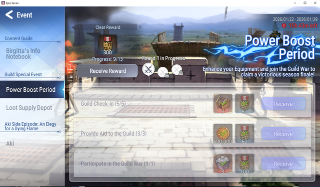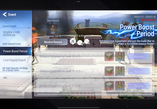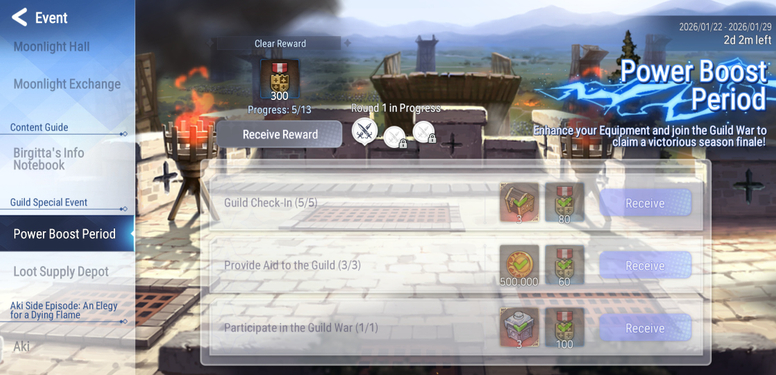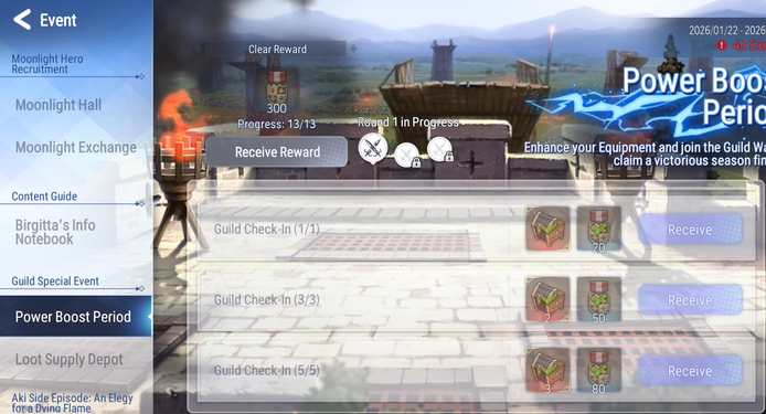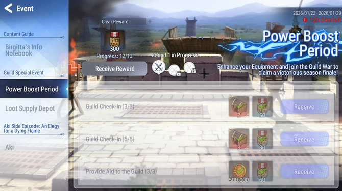 Complete one of the Guild-related missions (Guild Check-In / Send Aid to Guild Members / Participate in Guild War) from the “Power Up Period” event that started on 1/22. Then take a screenshot of the completed mission and attach it in the comments below using the format provided.