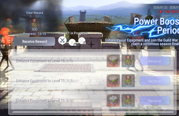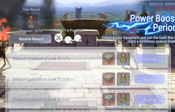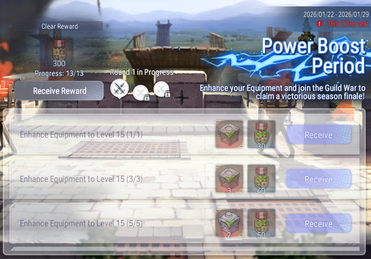 The Guild Power Up Period is just around the corner to help you prepare for the Guild War Tournament! By clearing the weekly missions, you can receive rewards and loot to strengthen your team!