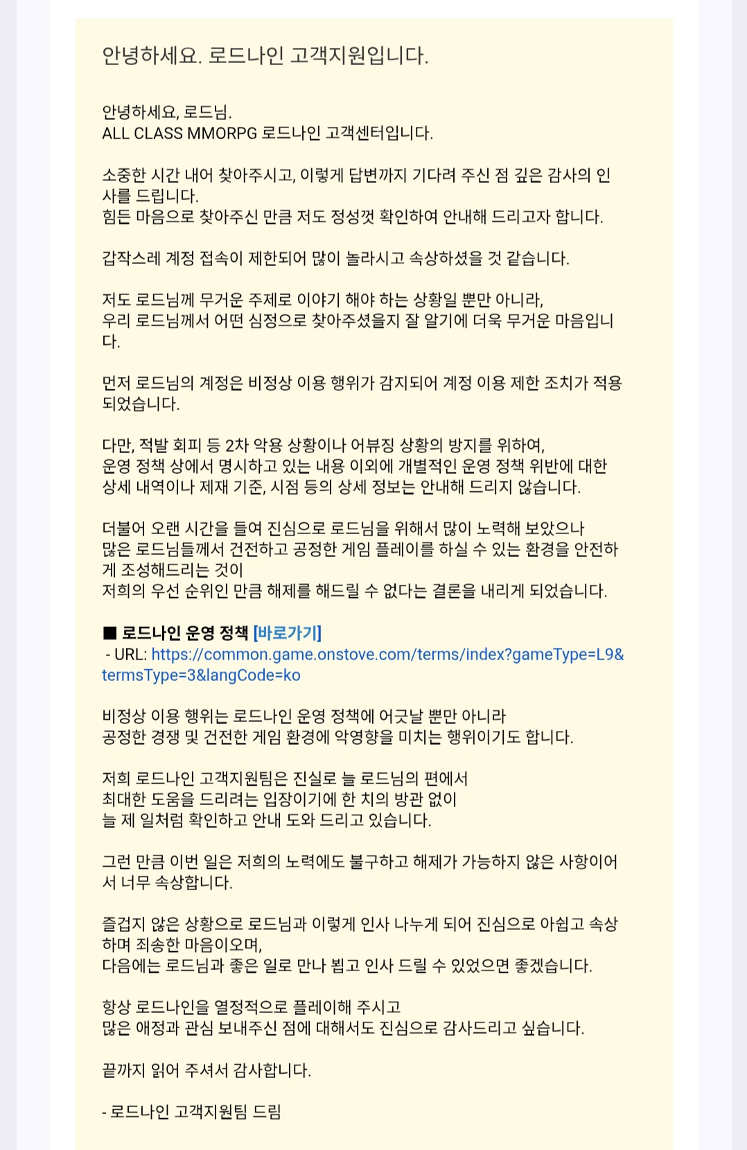 너 계정 몇개 돌렸는데? 원래 대부분의 게임사가 정지 사유는 디테일하게 안가르쳐준다.