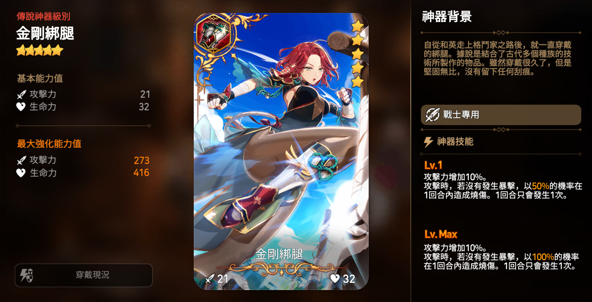 可以使用根據攻擊力差異等比貫穿防禦力的霸王熱火擊技能,來壓制低攻擊力敵人的火焰屬性戰士-「和英」!以及可以增加攻擊力,並在單一攻擊未發生暴擊時以一定機率造成燒傷的戰士專用神器-「金剛綁腿」!請試著在召喚機率UP!中遇見他們吧!
