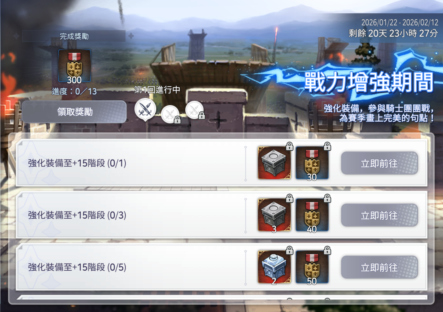 完成為了迎戰騎士團團戰所準備的各項任務,即可獲得獎勵與活動財物「騎士團勳章」。