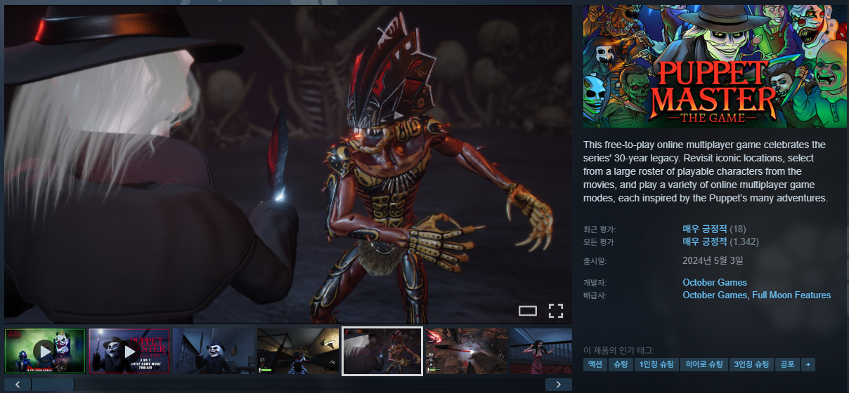 각종 기괴한 관절인형(퍼펫)을 사용한 FPS 게임이라고 하네요. 다만, 온라인 게임인지라, 삭제된 이후에는 사실상 즐길 수 없게되는 점 참고해 주세요.