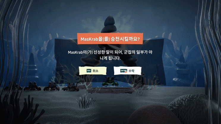 일종의 경험치라 보면 편하며, 레벨이 오른 게는 위처럼 선택지를 제공받습니다.