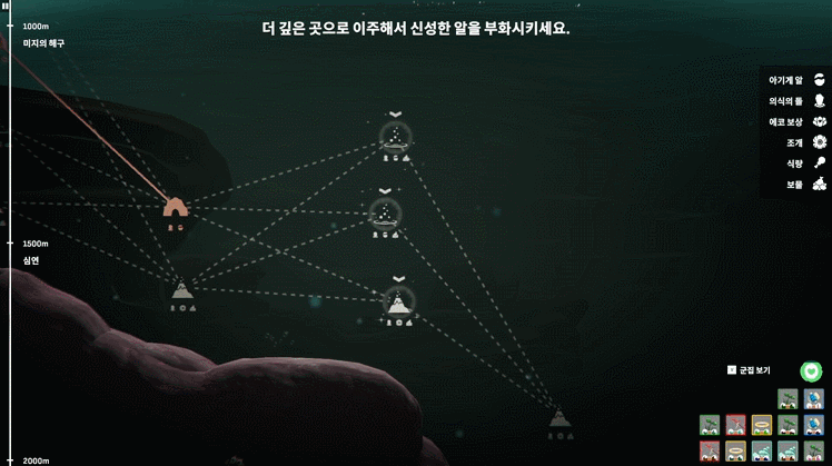 게임을 처음 시작하면 게 5마리를 부화시킬 수 있습니다.