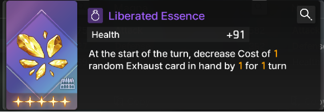 - Liberated Essence, which reduces the cost of an Exhaust card