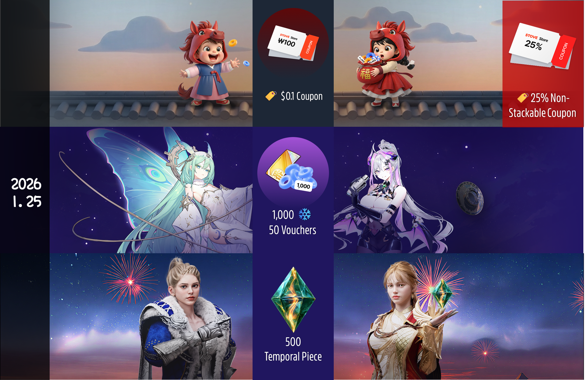 | ๐ท๏ธ $0.1 USD Stackable Coupon | STOVE Store Check-in | ๐ท๏ธ 25% Non-Stackable Coupon |