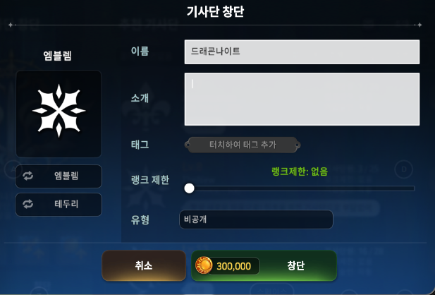 10레벨 되면 머다? 기사단 가입해야 함..