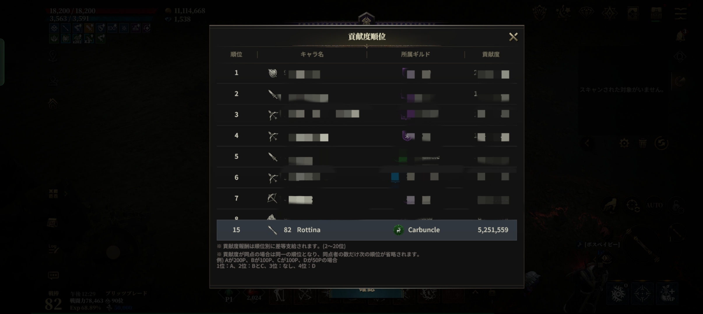 伝説アバターも伝説装備も無いけど、ワールドボス(ネドラ)で、20位以内に入れることもある。入れないことの方が多いけど、少しずつ頑張ってます。
