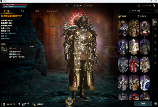 - 獲得した装備またはアバター、乗り物の画面