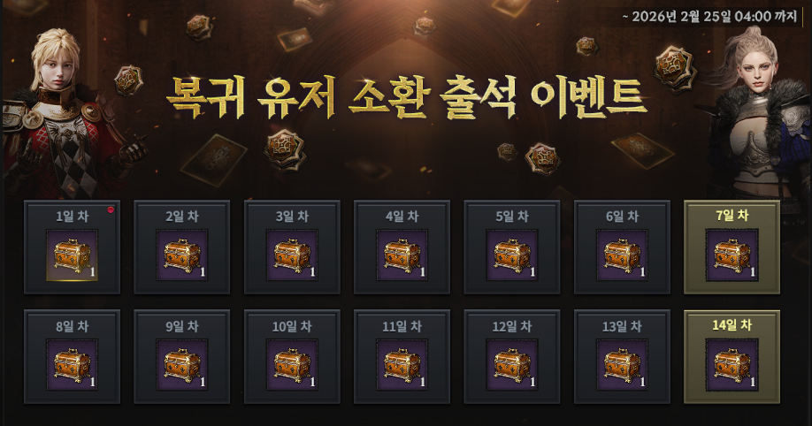 ※ 참여 조건 : 2026년 1월 28일 점검 이전 15일 동안 접속 기록이 없는 로드님