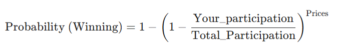 In my case, I had 262 participations of 4504 total, and there was 10 winners (Prices), so...