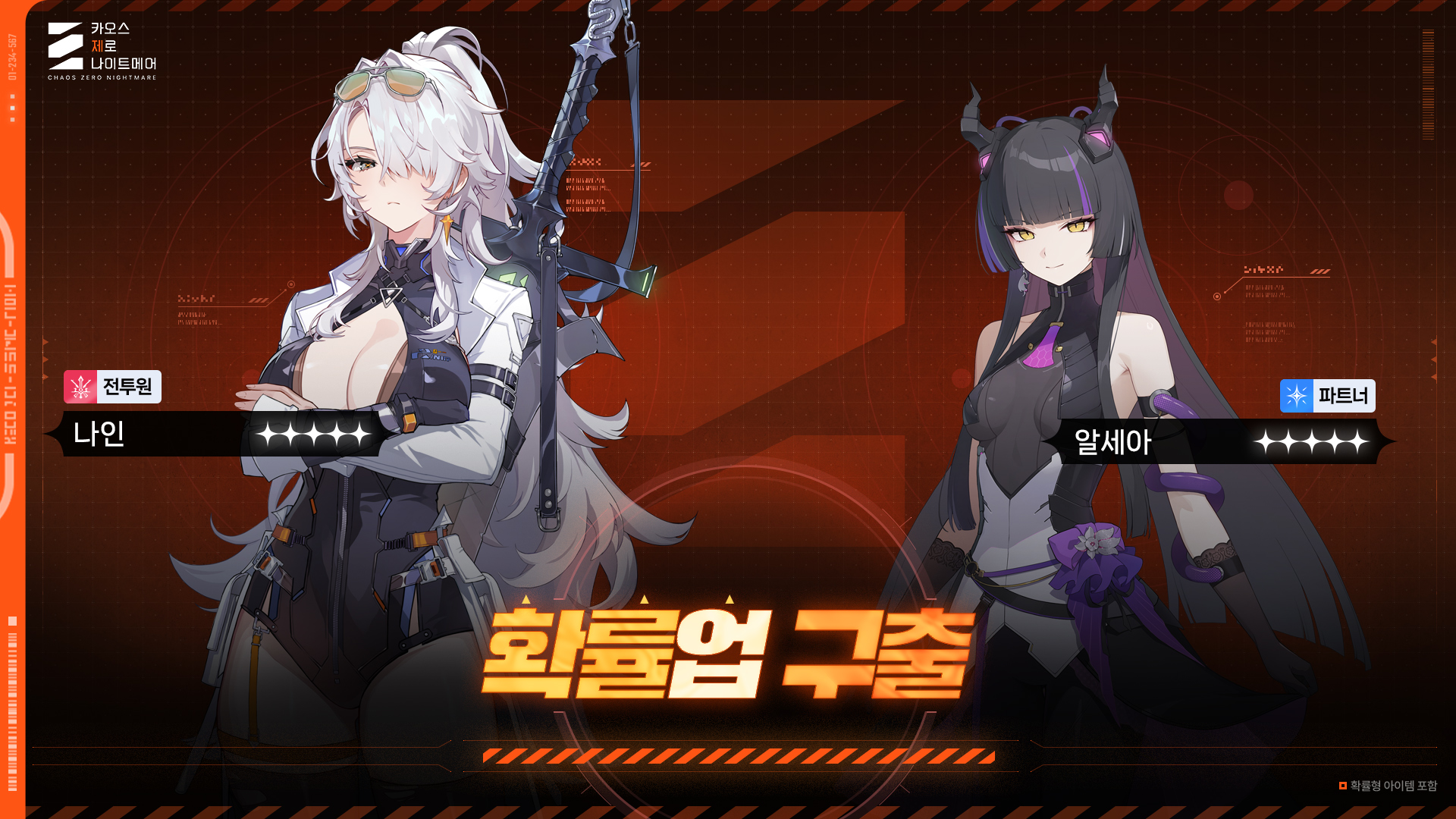 카오스 제로 나이트메어에 신규 요원인 전투원 나인과 파트너 알세아가 찾아옵니다.