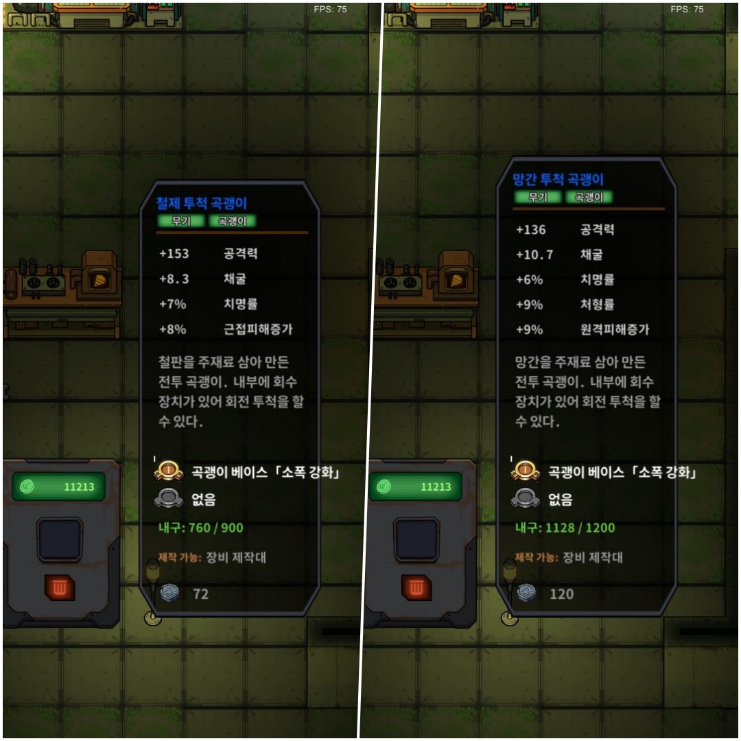 <철제 곡괭이 +2나 망간 곡괭이 +1 이나 성능은 비슷합니다.>