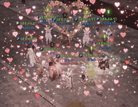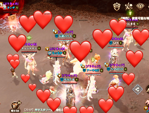 ✅ギルドメンバーと一緒に、ゲーム内でハートの形を作ってください。