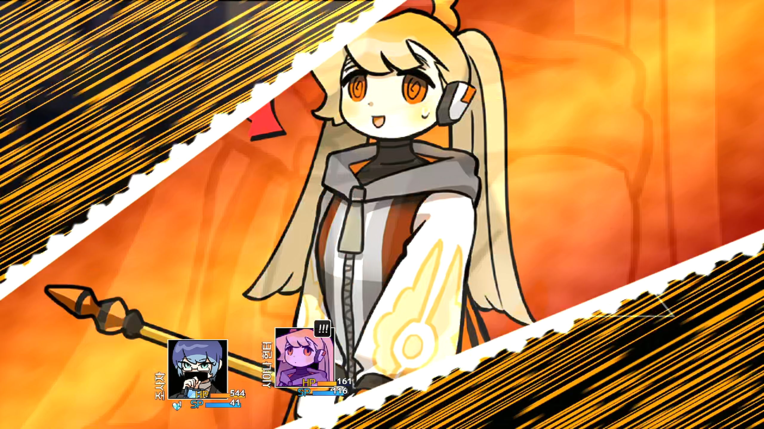 - 비주얼이 특색있다. 쯔꾸르 감성이 물씬나는 도트 그래픽과 카툰 느낌의 캐릭터 일러스트, 그리고 CRT 효과를 사용하여 레트로 게임을 하는 듯한 연출이 마음에 들었다. 그 외 사운드도 이와 잘 어울려 듣기 좋았다.