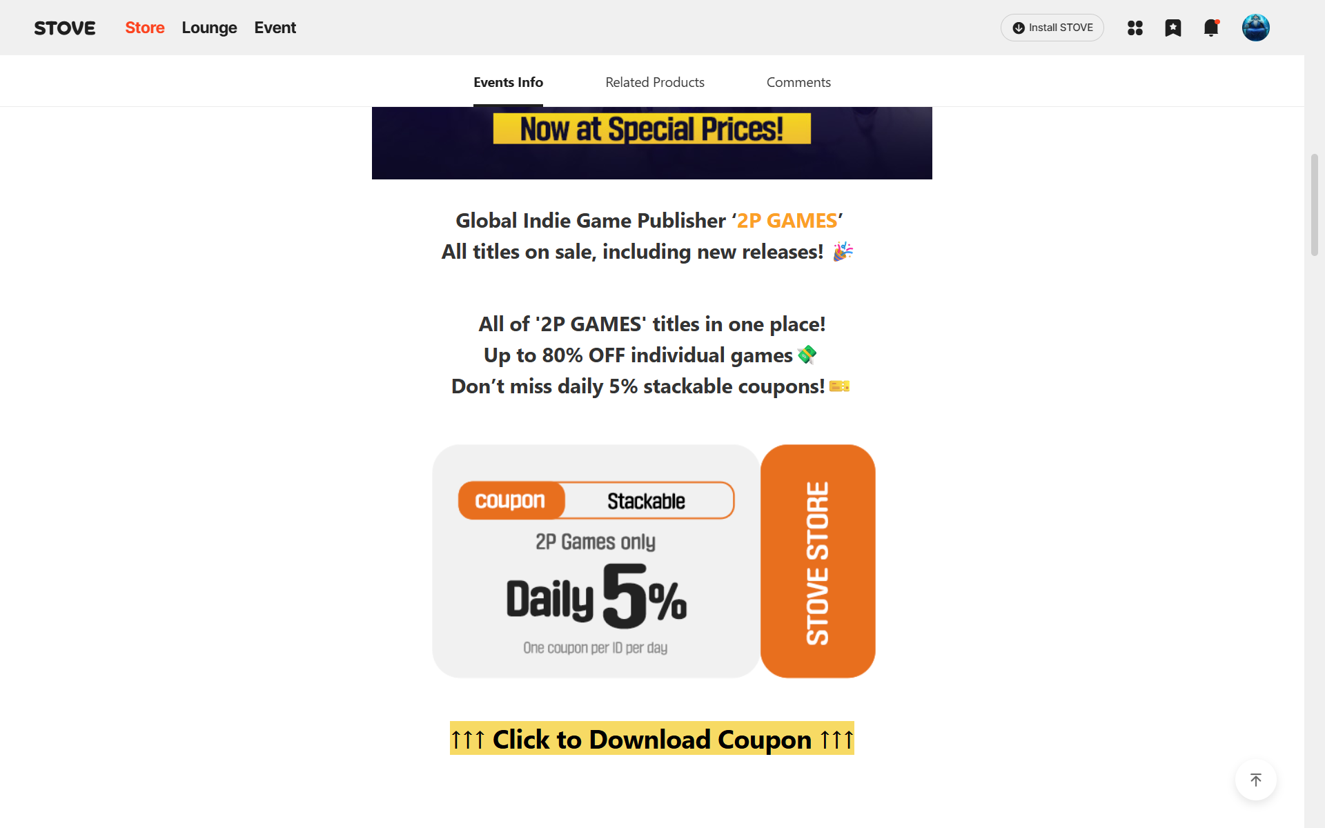 (You cannot participate in the same STOVE community event being held in other language regions.)