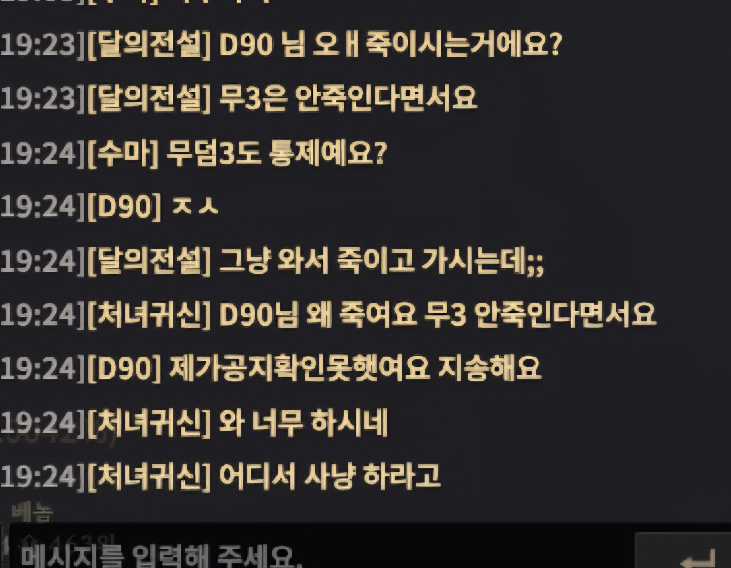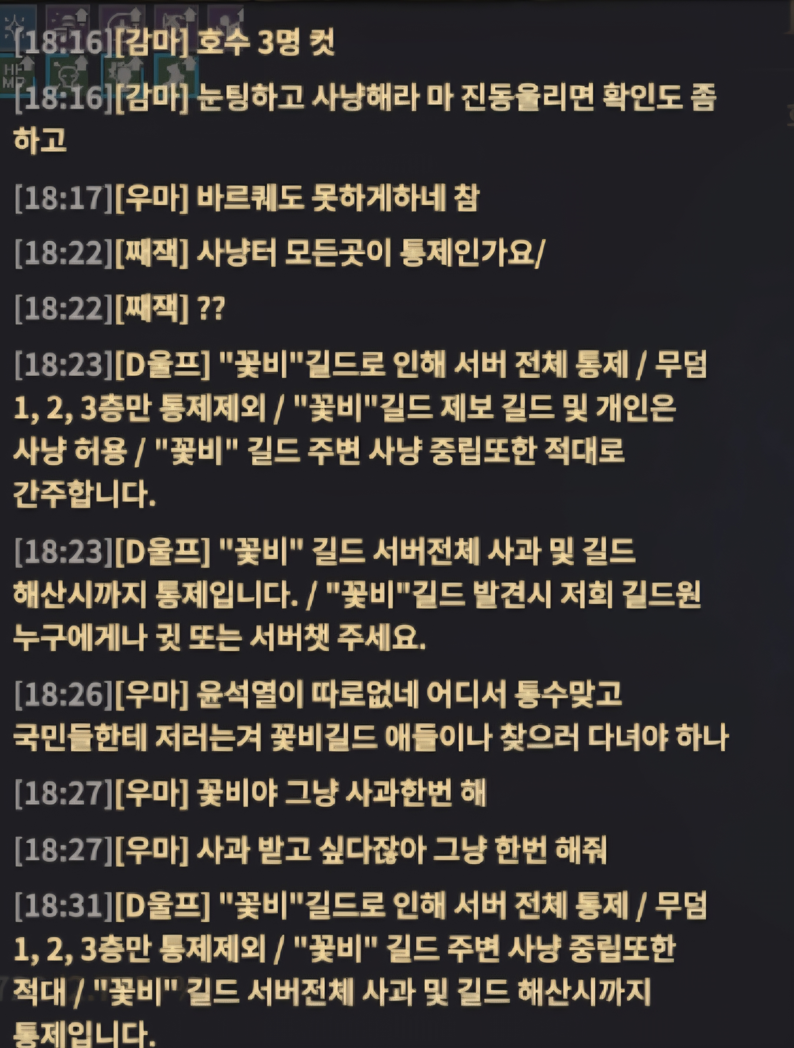 D가 동일이네 라인 맞죠.... 원래 섭초부터 통제 하기로 유명 했어여....유투버 라는것들이 돈받고 겜하면서 일반 유저들 통제하는꼴이라니... 참나...