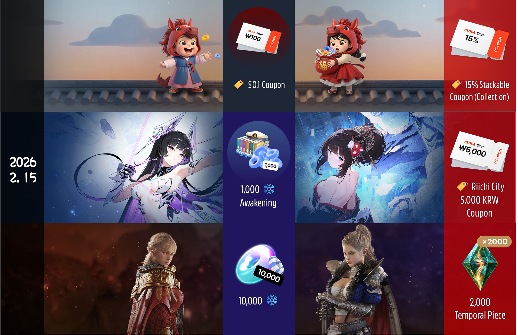 | 🏷️ $0.1 USD Stackable Coupon | STOVE Store Check-in | 🏷️ 15% Stackable Coupon |