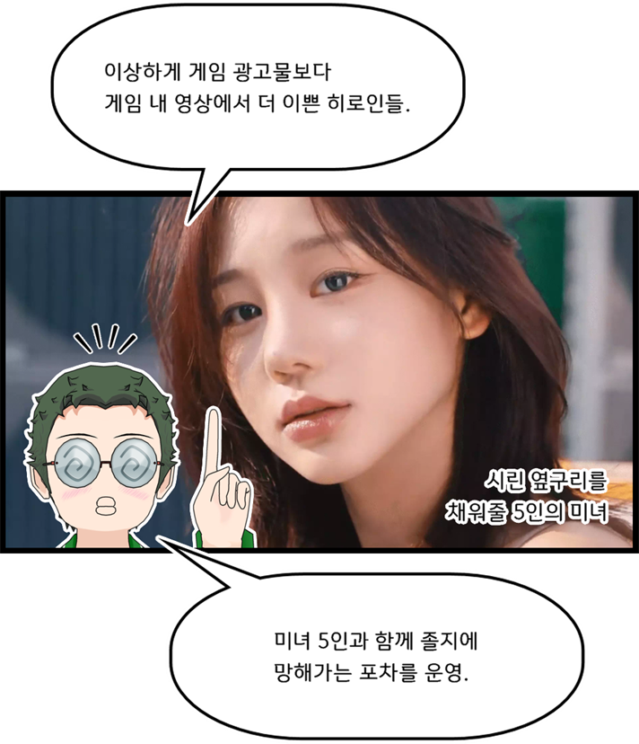 * 고바: 이상하게 게임 광고물보다 게임 내 영상에서 더 이쁜 히로인들.