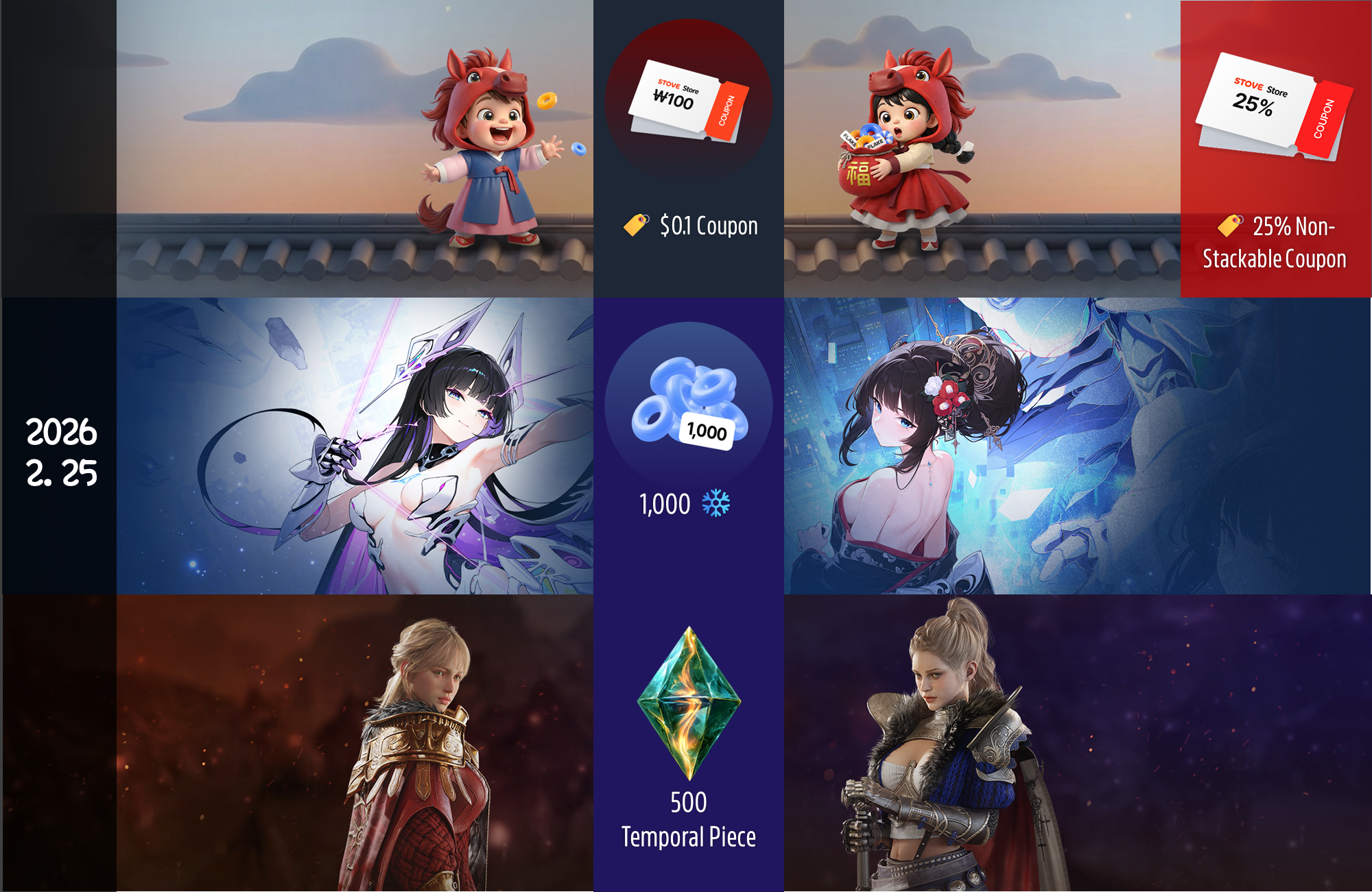| 🏷️ $0.1 USD Stackable Coupon | STOVE Store Check-in | 🏷️ 25% Non-Stackable Coupon |