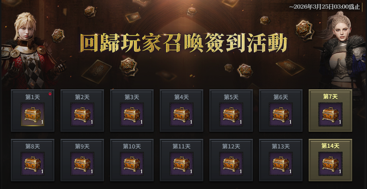 ※ 參加條件:2026年2月25日維護作業前,15天內未有登入遊戲紀錄的洛德
