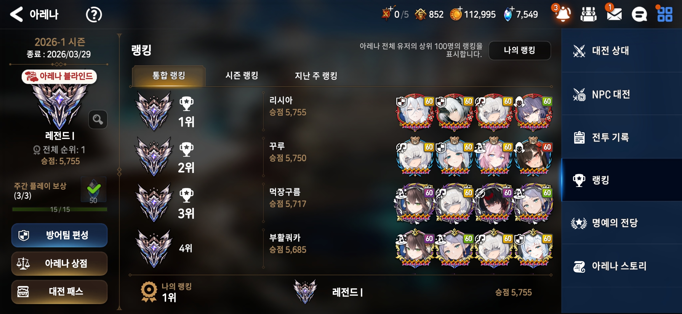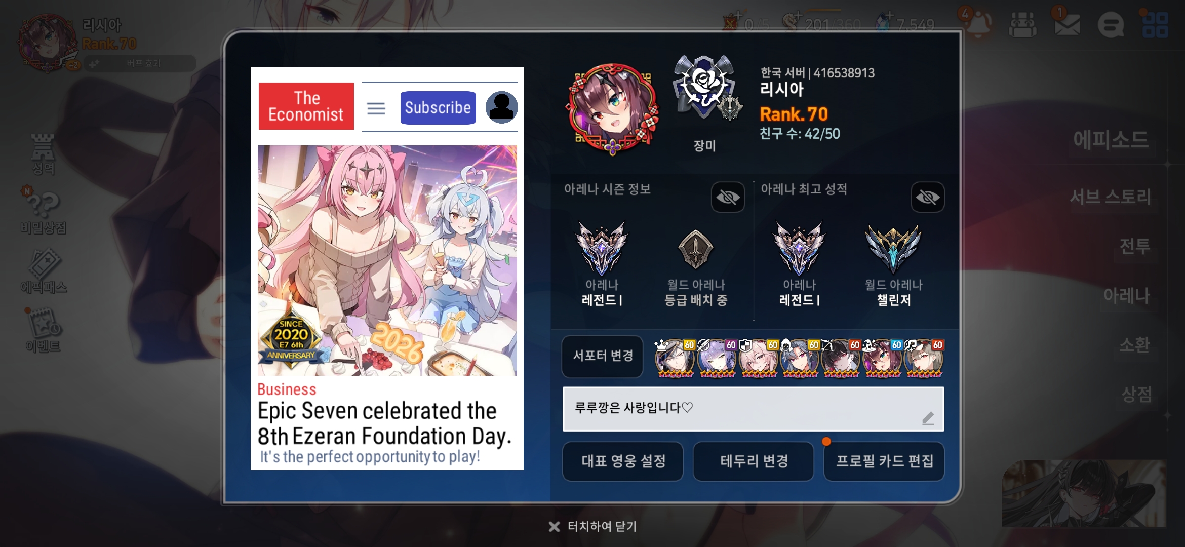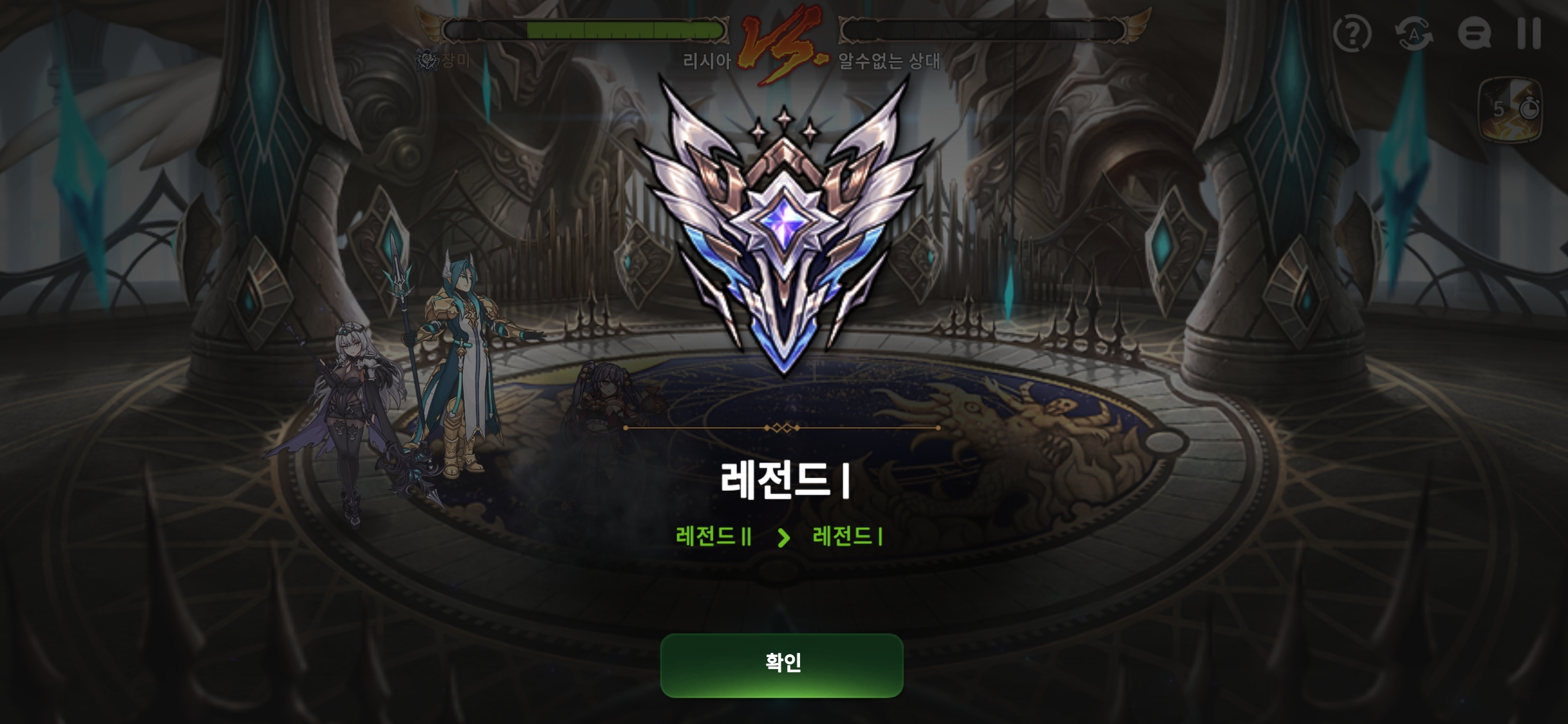 이번에 아레나가 새로 개편되면서 에생 첫 레전드1을 찍어보네요!