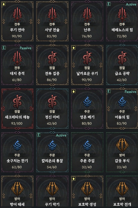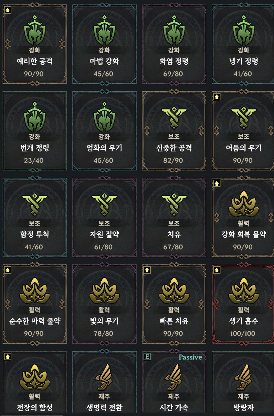 스트라이커는 테레 대지 , 칼리온 영혼 , 시간역행 시간가속이 효율이 좋습니다 점멸쓰시다가 시간역행구하시면 바꿔주세요 광역은 역행스트가 좋습니다 무과금으로 하시면 승급서수급이 힘들어서 그냥 베놈 쭉 가셔도 됩니다