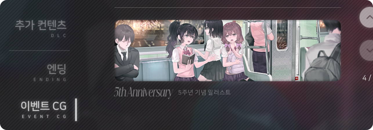 아울러 이번 5주년을 맞아 진행된 3.7 업데이트로, 인 게임의 ‘추가요소’ > ‘이벤트 CG’ 탭을 통해서도 마찬가지로 5주년 기념 일러스트를 만나보실 수 있습니다.