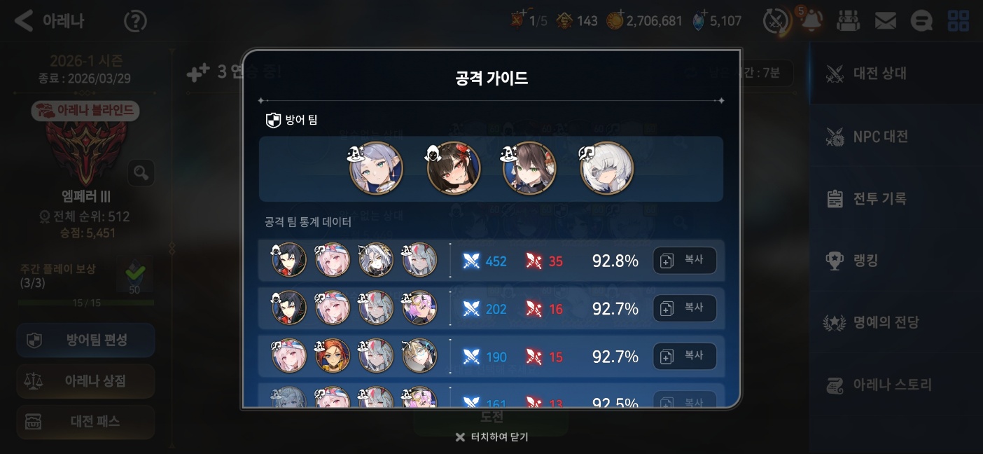 개인적으로 이번 아레나 개편에서 가장 크게 체감되는 요소가 바로 방어덱 공략 정보의 오픈입니다.