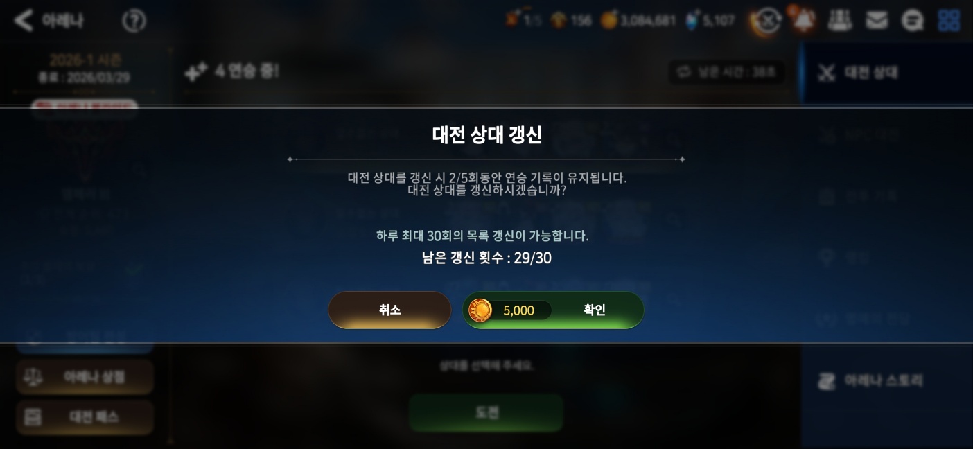 그래서 최대 5회까지 대전 리스트 갱신이 가능해진다는 뜻입니다.