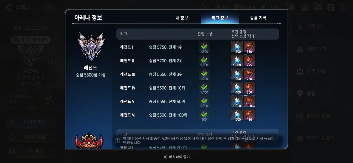 마침 저도 이번 아레나 개편에 발맞춰 레전드1 티어를 달성했는데,
