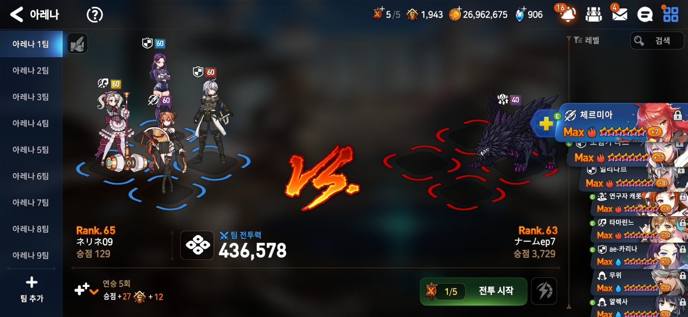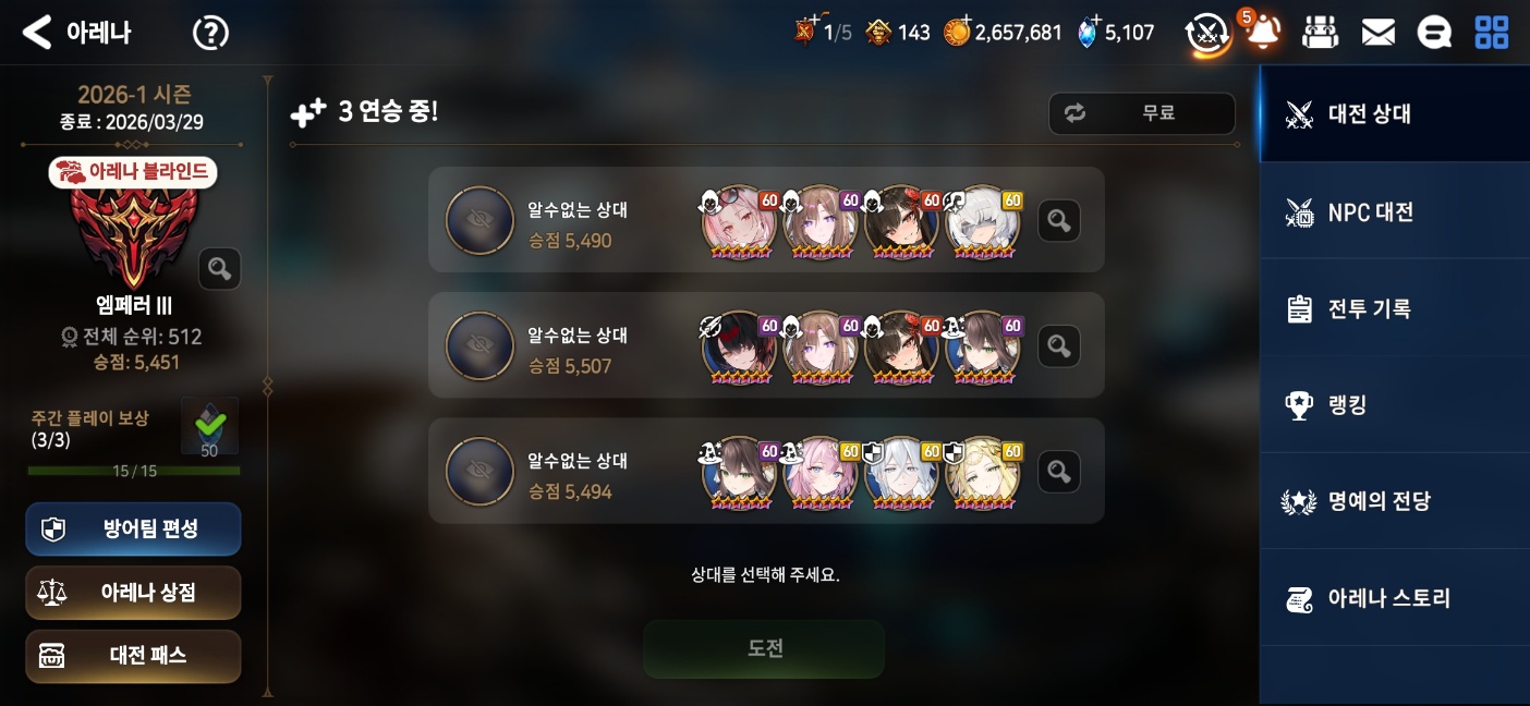 한편 공격 시 연승 보너스를 쉽게 유지하도록 하기 위해 매칭 리스트 갱신이 매일 최대 5회까지 허용됩니다.