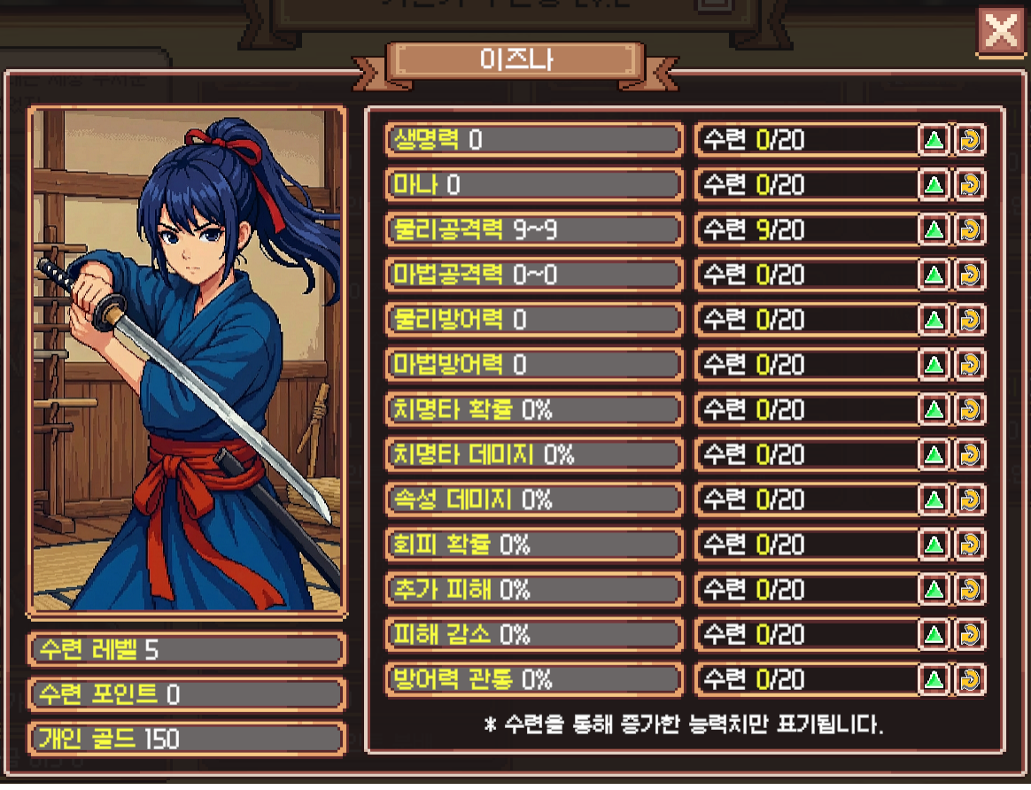 다른 애들은 오류 안 났는데 이즈나 수련치 하나 (총량 = 수련 레벨x2) 사라짐