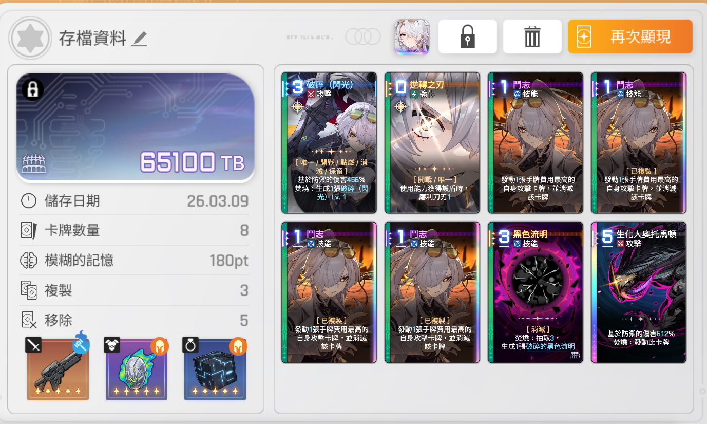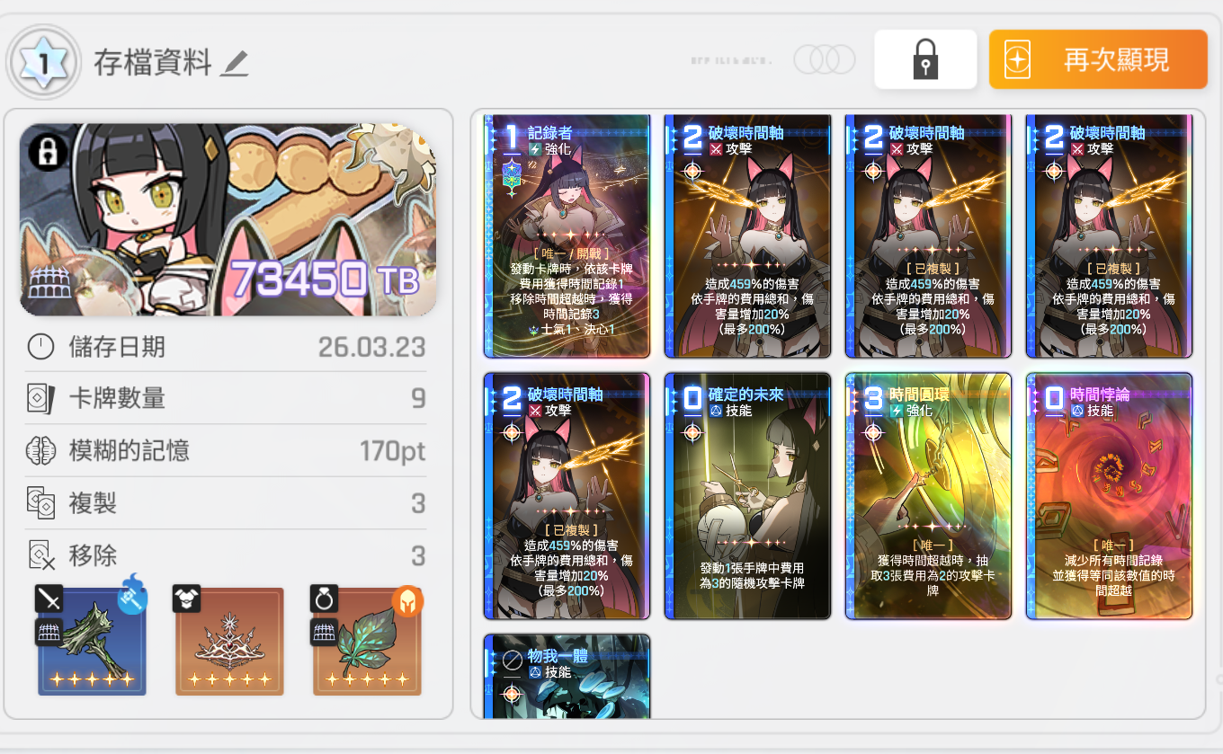 刪除三張基本牌 複製3張破壞時間軸 找費用總和增傷的